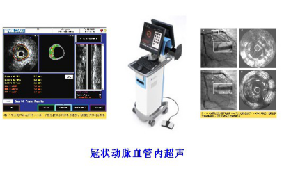 血管内超声(IVUS)是超声技术和导管技术相结合的一种新的诊断方法,是在传统的冠脉造影基础上,把头发丝般粗细的超声探头置于导管头端,置入冠脉内,在血管腔内进行360°扫描,使得管壁和管腔内的病变清晰可见,精确地测量出冠脉狭窄和斑块负荷的程度及性质,区分冠脉夹层,血肿,血栓,评价支架植入效果,在冠心病的诊断和介入治疗中有很高的指导价值。